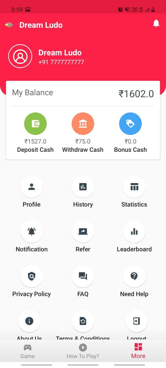 If you need any help regard our app contact us on help@dreamludo.in or Whatsapp us on +91 xxxx xxxxxx.